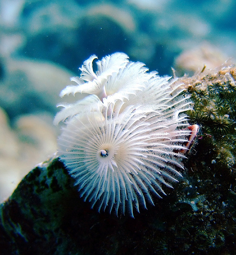 Mereka bersembunyi dalam lubang-lubang, menonjolkan kepalanya, dan saat merasa terancam, mereka akan segera menarik kembali kepalanya ke dalam lubang. Tentakel-tentakelnya yang mirip bulu membentuk "pohon-pohon natal" kembar yang disebut radioles, yang akan menyaring plankton untuk makanannya, juga membantu pernapasan (respirasi).